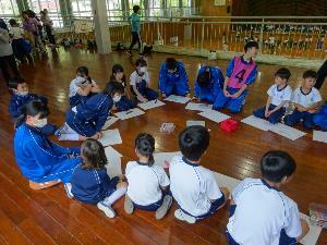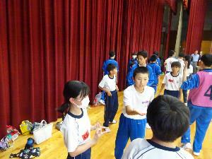 本日は、波賀学園ふれあい交流会がありました。生徒会執行部が中心となり、1~9年生の縦割り班6チームで得点を競い合いました。