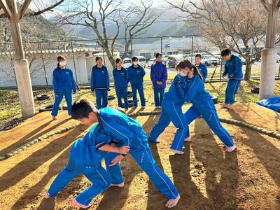 生徒達も最初は寒いと言いながら、時間が経つにつれ友達と押し合いながら体験する相撲にとても意欲的に取り組んでくれていました。