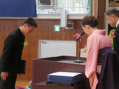 在校生からの送辞は、先輩への感謝の気持ちと、先輩からのバトンをしっかり受け継ぎ、波賀中学校をさらによい学校にする、という決意が語られました。そして、7,8年生の「送る歌」は卒業生を想い、泣きながら歌う生徒もいました。その姿から波賀中学校の絆を感じました。