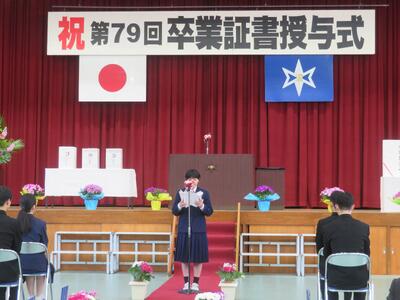 卒業生の答辞は、3年間の思い出や支えてくださったたくさんの方への感謝の気持ちにあふれた、優しく、かつ力強い素晴らしい答辞でした。